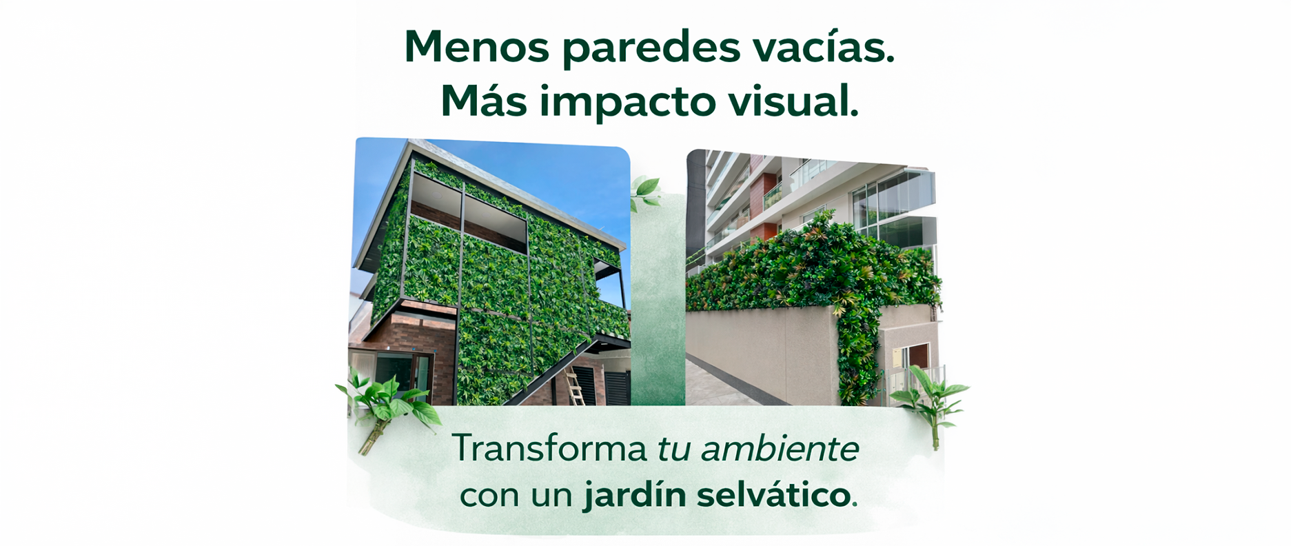 Esta solución arquitectónica, versátil y practica de follaje artificial, puede ser utilizado en espacios internos como externos, generando privacidad, armonía, tranquilidad y vida a mallas, paredes, cercos, fachadas y enrejados.